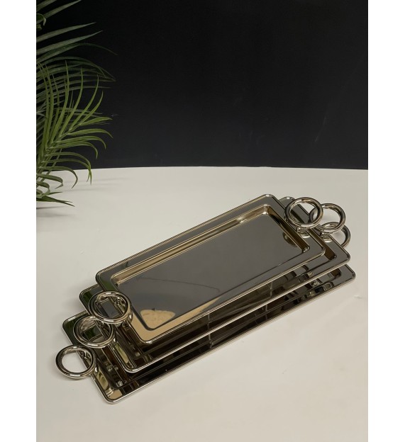صينية مستطيل فضي وسط