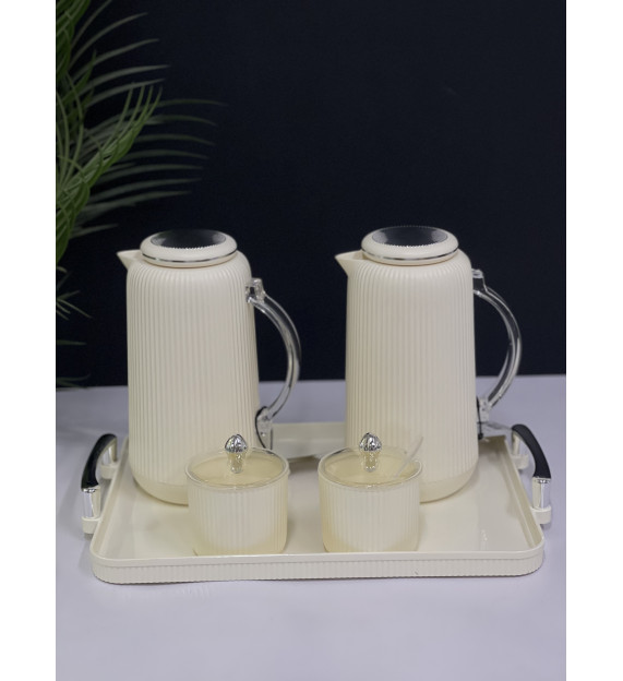 طقم ترامس فضي مع صينية